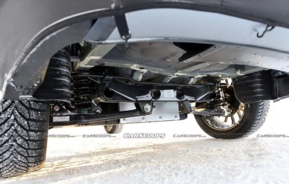 주목해야 할 부분은 이 매체가 후면 범퍼 아래로 기어들어가 몰래 찍은 사진입니다. 이 사진을 보시면 스포츠유틸리티차의 지상고를 낮추기 위해 바닥에 장착한 배터리 팩을 확인할 수 있습니다.