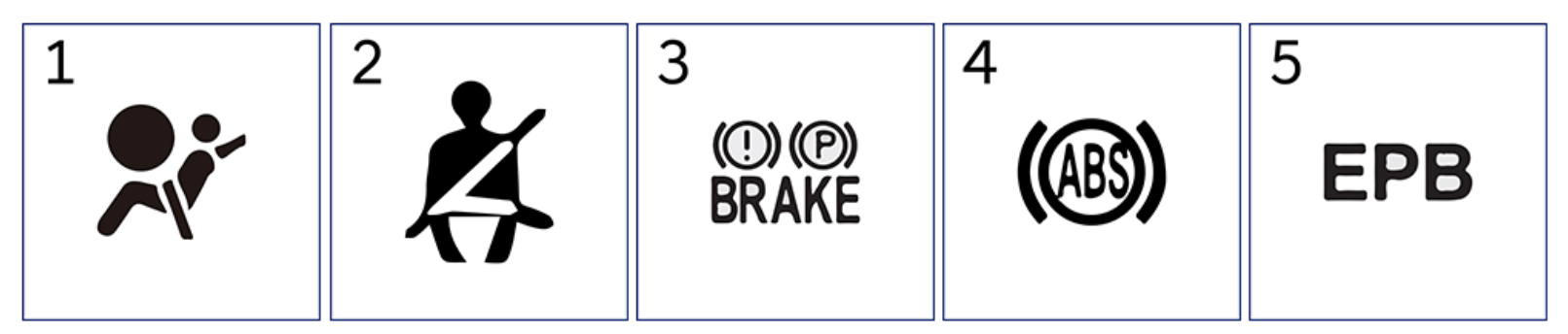 가장 흔하게 볼 수 있는 경고등으로, 좌석에 앉은 후 안전벨트를 착용하지 않으면 경고등이 켜지고, 경고음이 발생합니다.