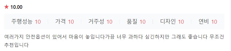 연비 : 복합 10km/l (도심 9.4, 고속 10.8)