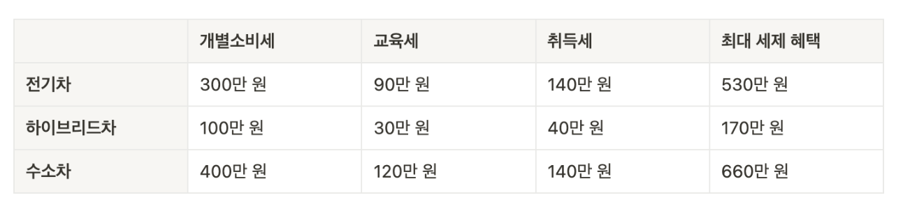 • 세제 할인 연장: 자동차 개별소비세 감면 혜택이 2024년 12월 31일까지 연장될 예정이며, 이는 하이브리드 차량을 포함한 친환경 차량에도 적용됩니다. 따라서 취득세뿐만 아니라 자동차 구매 가격에서도 세금 감면 혜택을 기대할 수 있습니다.